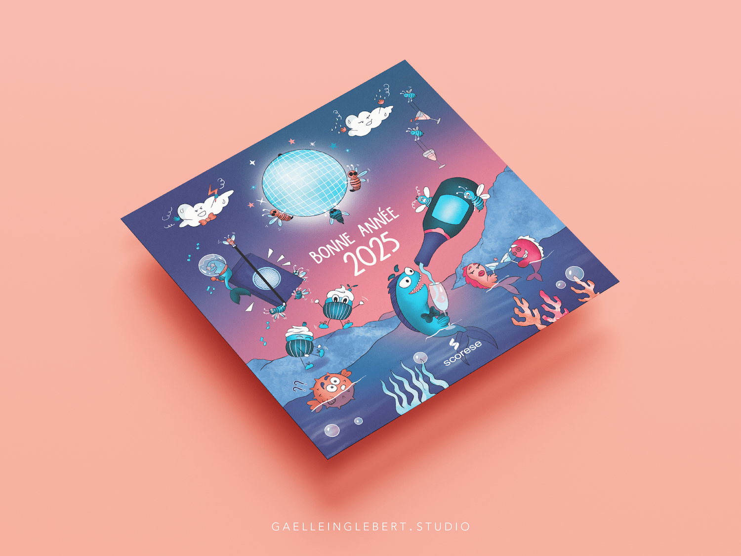 Création d’une illustration personnalisée selon un brief précis pour décorer la carte de voeux 2025 de Scorese.